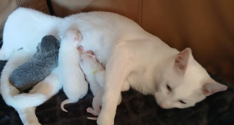Ceri Valentina is bevallen op 14-01-2026 van 3 kittens. 2 witte en 1 blauwe. Er zijn nog 2 witte beschikbaar